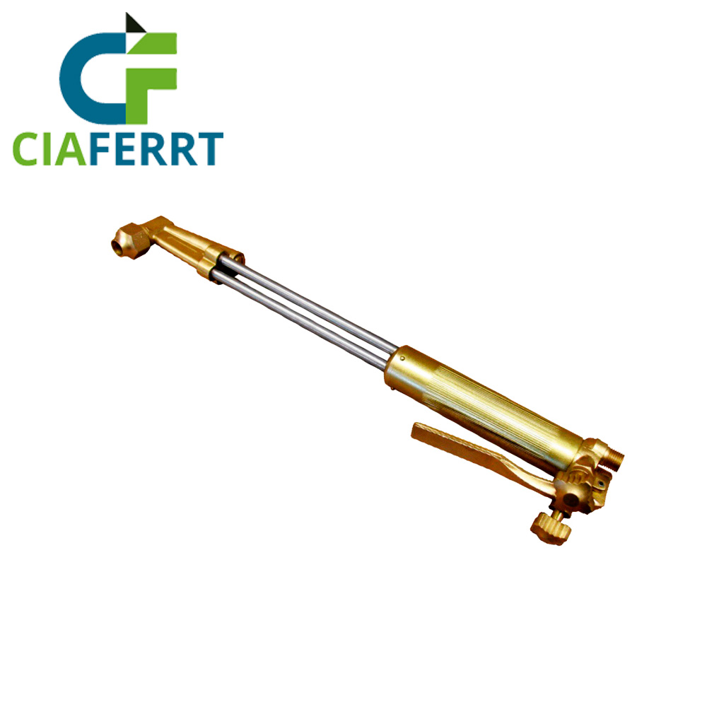 Cabeza de latón a 90°. Tubos de acero inoxidable colocados de manera triangular. 18” de largo. Utiliza boquillas de corte serie “A”. Corta hasta 12” de espesor.